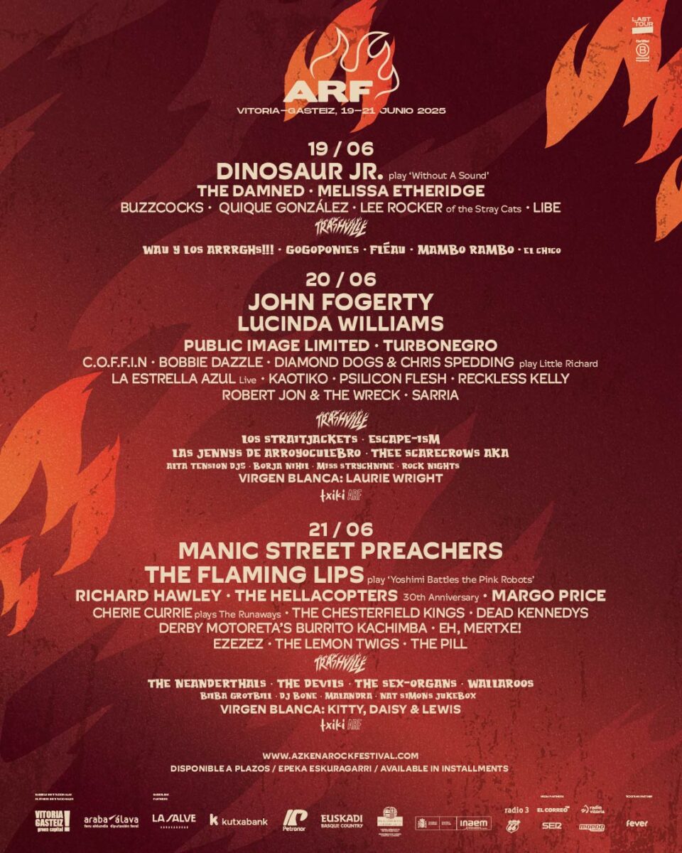 El Azkena Rock Festival desveló los horarios definitivos de su vigésimo tercera edición que se celebrará del 19 al 21 de junio de 2025 en Mendizabala, Vitoria-Gasteiz. El festival reunirá a leyendas del rock como John Fogerty en fecha única en España, Manic Street Preachers en exclusiva nacional, The Flaming Lips interpretando íntegramente su álbum Yoshimi Battles the Pink Robots y Dinosaur Jr tocando completo Without a Sound.