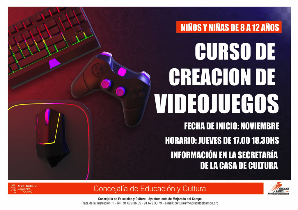 El Ayuntamiento de Mejorada del Campo, a través de la Concejalía de Educación y Cultura, aumenta desde este mes la oferta educativa con un curso de creación de videojuegos, para edades entre 8 y 12 años, y un curso de Unity 3D para menores de 12 a 16 años.