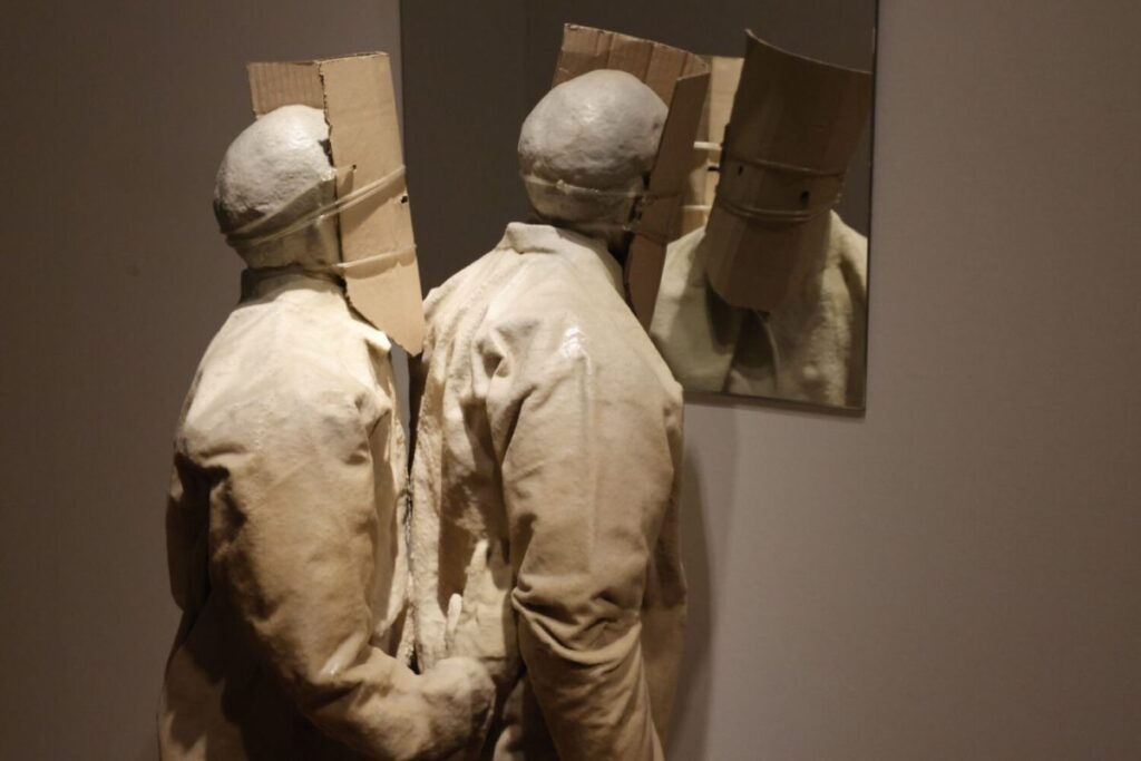 El recorrido incluye obras como The Prompter, Conversation Pieces y The Nature of Visual Illusion, que plantean una experiencia donde el visitante se enfrenta a figuras silenciosas suspendidas entre la ilusión y la realidad. Juan Muñoz, nacido en Madrid en 1953 y fallecido en 2001, mantuvo una relación constante con el Museo Nacional del Prado y la historia del arte. Del Renacimiento adoptó la preocupación por situar al espectador en relación con la totalidad de la obra, mientras que del manierismo y el Barroco tomó la experimentación con la distorsión de las formas, la manipulación del espacio y la tensión entre espectador y objeto.