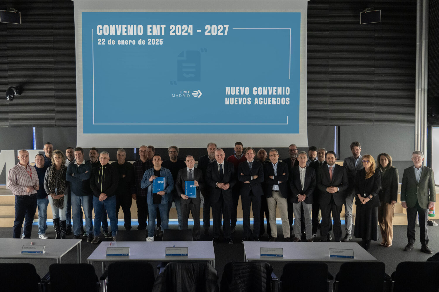 La Empresa Municipal de Transportes de Madrid (EMT) ha firmado su nuevo convenio colectivo 2024-2027, respaldado por el 86% de la plantilla en referéndum. El acuerdo, rubricado por el delegado de Urbanismo, Medio Ambiente y Movilidad, Borja Carabante, establece mejoras laborales para más de 10.000 empleados.