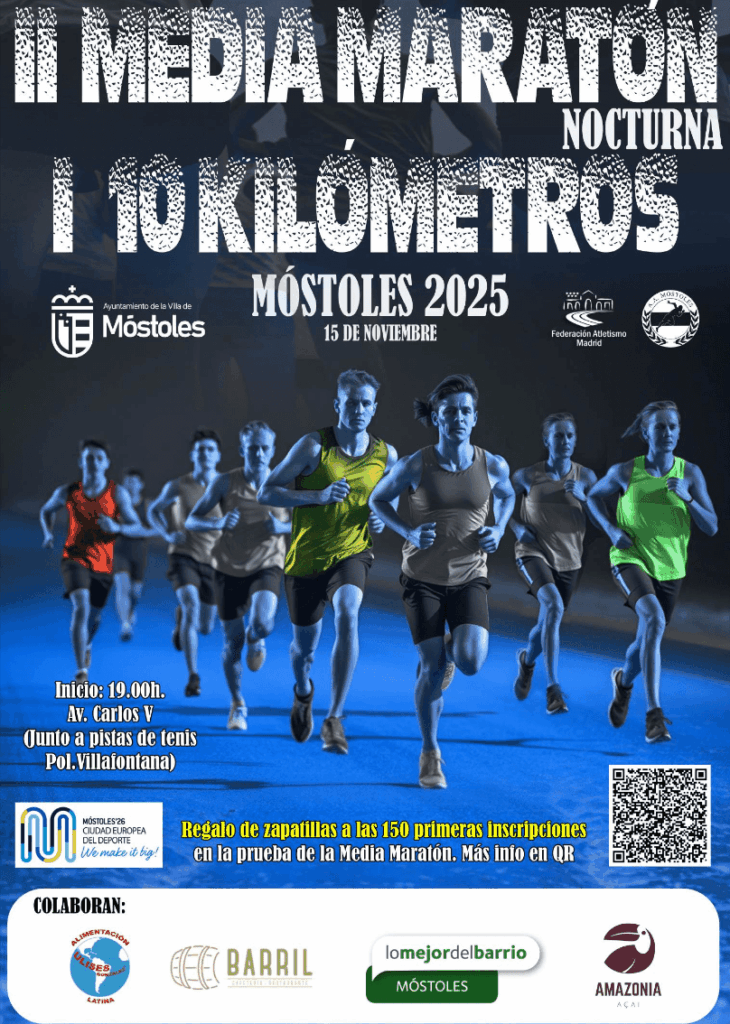 La II Media Maratón Nocturna Ciudad de Móstoles se celebrará el 15 de noviembre a las 19:00 horas con la incorporación de una prueba de 10 kilómetros como novedad de esta edición. La Concejalía de Deportes y Sanidad del Ayuntamiento de Móstoles ha organizado ambas carreras sobre un circuito urbano de 10,5 kilómetros con salida y meta en la Avenida Carlos V, junto al polideportivo de Villafontana. Las 150 primeras inscripciones por internet para la media maratón recibirán unas zapatillas running como obsequio si finalizan la prueba.