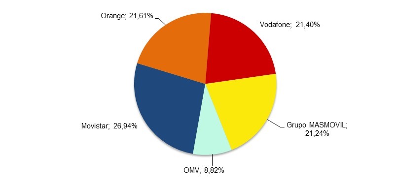 El 74,9 % del total de líneas se concentra en Movistar, Orange y Grupo MASMOVIL.