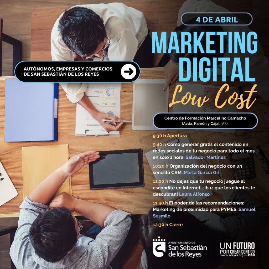 El Ayuntamiento de San Sebastián de los Reyes organiza el próximo 4 de abril una sesión formativa gratuita titulada «Marketing Digital Low Cost» dirigida al tejido empresarial, autónomo y emprendedor local. El evento, que se desarrollará desde las 9:30 horas en el Centro de Formación Ocupacional Marcelino Camacho, busca proporcionar herramientas digitales que faciliten la presencia en internet, simplifiquen procesos y ayuden en la gestión de negocios de forma sencilla y con costes mínimos o inexistentes.