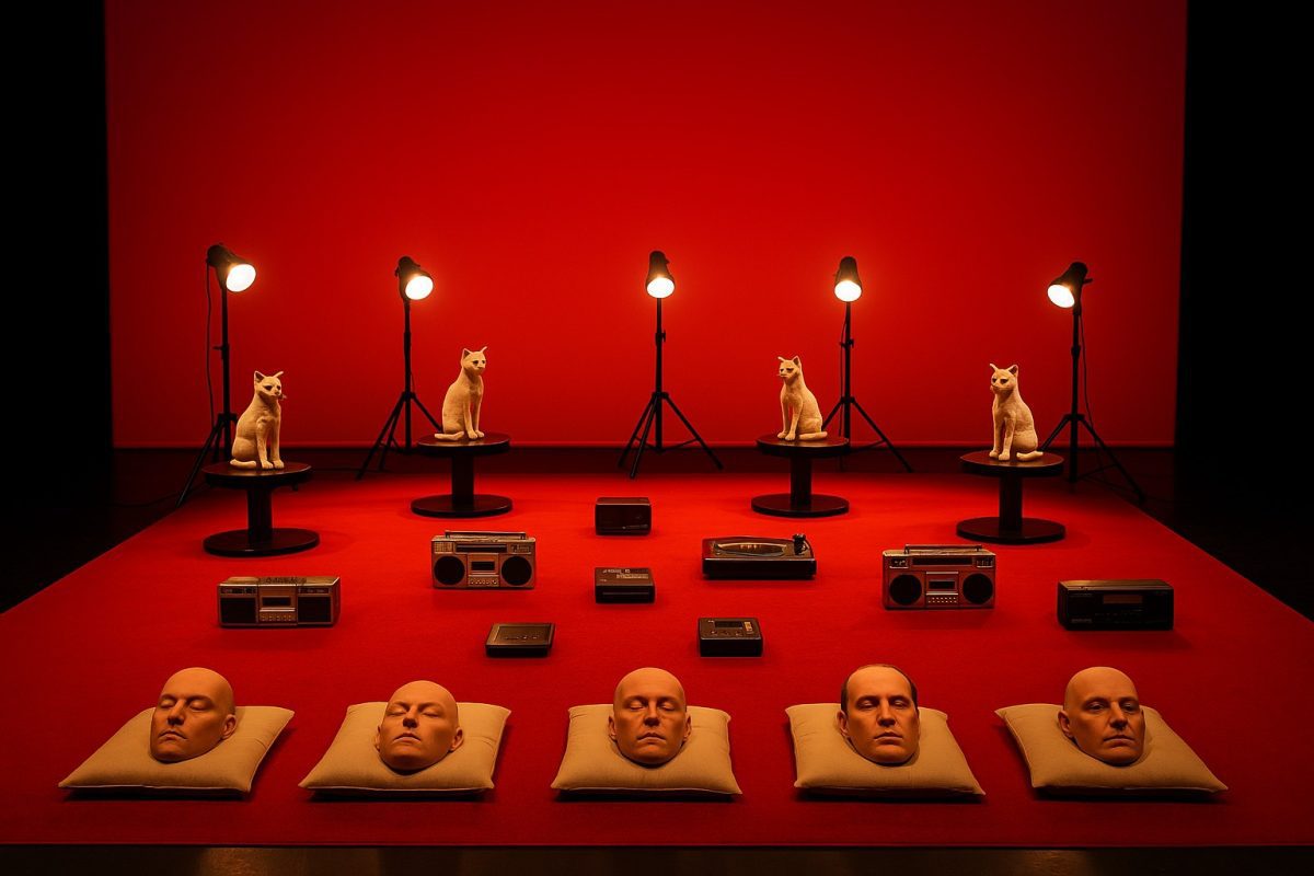 La escenografía combina proyecciones, paisajes sonoros, discursos políticos y conversaciones telefónicas. El montaje emplea dispositivos analógicos —radios, tocadiscos, teléfonos de línea, contestadoras automáticas— para crear ficciones digitales que reproducen miedos colectivos y utopías. El resultado es una conferencia-performance concebida como instalación.
