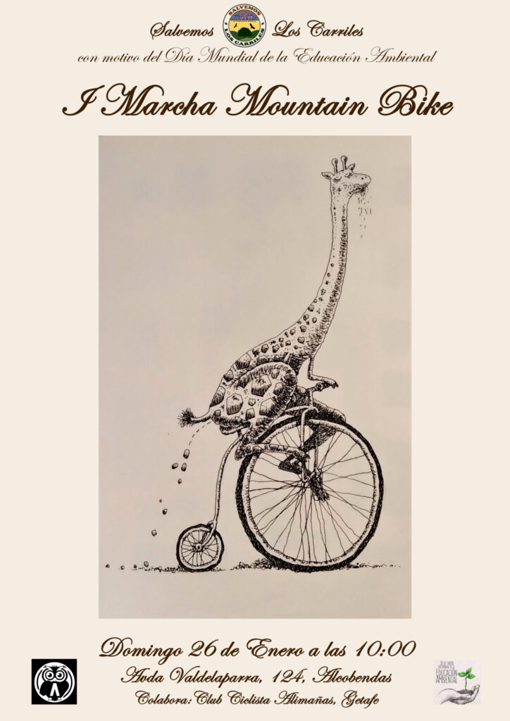 La Plataforma Ciudadana Salvemos Los Carriles de Alcobendas, junto al Club Ciclista Alimañas de Getafe, organiza la primera marcha MTB en Los Carriles de Alcobendas el domingo 26 de enero de 2025 a las 10:00 horas, partiendo desde la sede de la Policía Local en la Avenida Valdelaparra 124, con el objetivo de visibilizar este espacio natural.