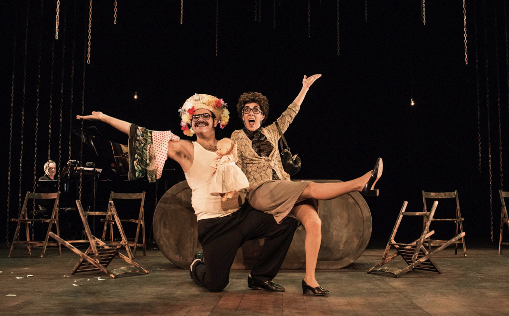 La pareja artística Jorge Usón (‘Las noches de Tefía’, ‘Veneno’, ‘Voy a pasármelo bien’) y Carmen Barrantes (‘Plátanos, cacahuetes y lo que se viento se llevó’, ‘Twist’, ‘La Extinta poética’…) acompañada al piano por Néstor Ballesteros volverán a encarnar a Esteban y Marigel, los ferreteros aragoneses que deciden ir un día al teatro y a partir de ese momento ya no podrán ser los mismos porque la música posee a Esteban literalmente y convierte su vida en un grotesco musical, en un volcán de emociones.