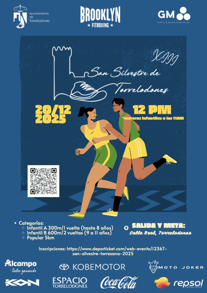 Torrelodones acogerá la decimotercera edición de la San Silvestre el 20 de diciembre con un recorrido urbano que saldrá de la calle Real. La carrera popular, adelantada respecto a la fecha tradicional de fin de año, contará con dos categorías infantiles y una general. La prueba está organizada por la concejalía de Deportes del Ayuntamiento de Torrelodones y patrocinada por Brooklyn Fitboxing y GM, con la colaboración de Alcampo, KON, Coca-Cola, Kobe Motor, Motor Joker, Repsol y Espacio Torrelodones.